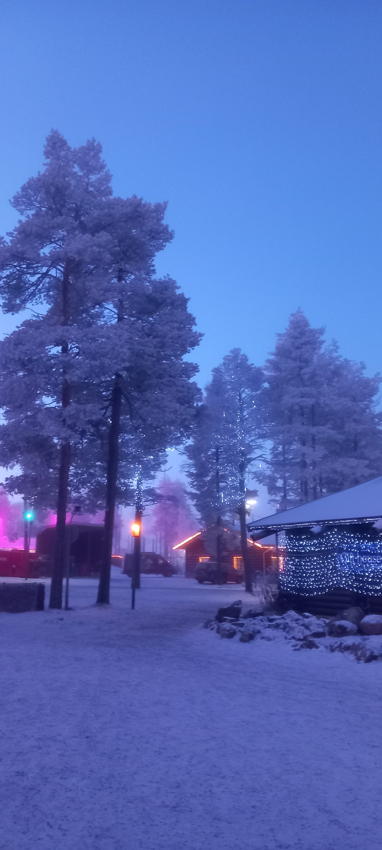 Bij aankomst in Santa Claus Village werden we begroet door een sprookjesachtig winterlandschap. Overal waar je keek, zag je kerstversiering, besneeuwde dennenbomen en kleurrijke kerstlichtjes. De magie van Kerstmis was overal voelbaar.