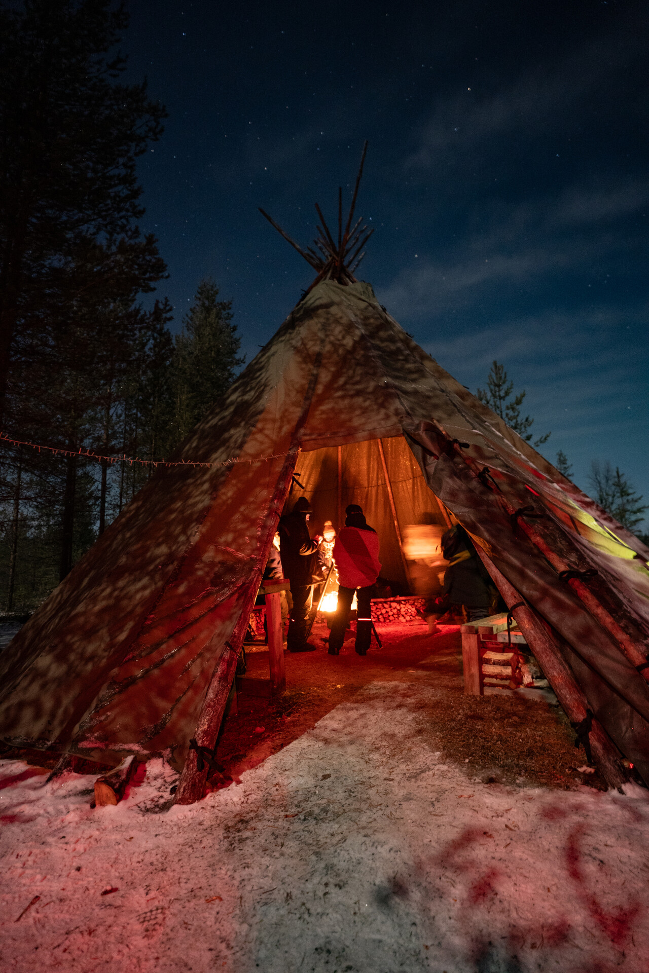 ’s Avonds gingen we op een aurora hunting tour, op zoek naar het noorderlicht. Onze gids nam ons mee naar een afgelegen plek met weinig lichtvervuiling, waar we de beste kans hadden om dit natuurfenomeen te zien. Helaas hebben we ondanks de heldere nacht alleen heel veel sterren gezien; maar geen noordenlicht. We hebben die avond boven het kampvuur braadworstjes gegrild en warme bessensap gedronken. Traditioneel drinkt men warme bessensap in Finland om lekker warm te blijven.
