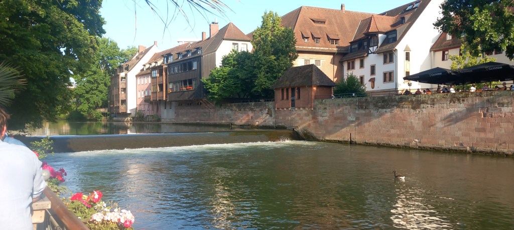 Na het museumbezoek vervolgden we onze wandeling langs het water en sloten de dag af bij een klein restaurantje aan de oever. Het eten was heerlijk, de sfeer ontspannen – precies wat we nodig hadden na zo’n indrukwekkend en beladen dagdeel. Die combinatie van historische diepgang én gastvrije gezelligheid maakte Neurenberg tot een onverwacht hoogtepunt van onze reis.