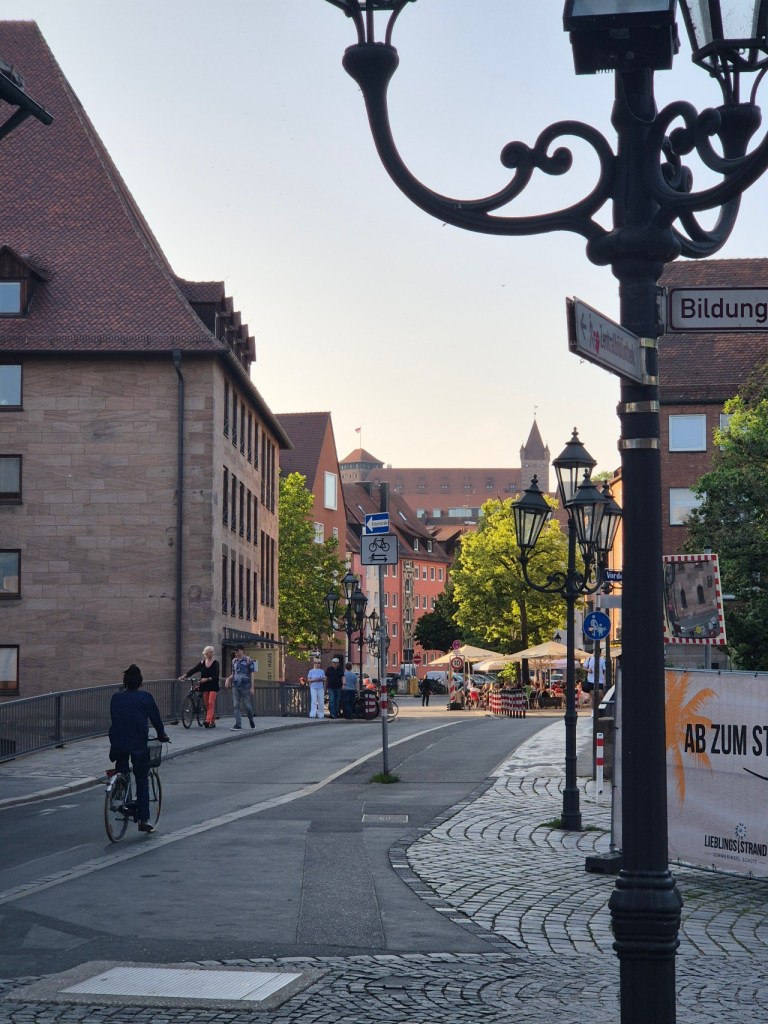 Wat we vooraf misschien niet hadden verwacht, was dat de stad zelf óók zo’n mooie indruk zou maken. Voordat we het Memorial bezochten, wandelden we eerst richting het historische centrum. Dat was al direct indrukwekkend: smalle straatjes, vakwerkhuizen, oude stadspoorten en een prachtig uitzicht op de rivier de Pegnitz. Neurenberg voelt rijk aan geschiedenis, maar straalt tegelijk rust en charme uit.